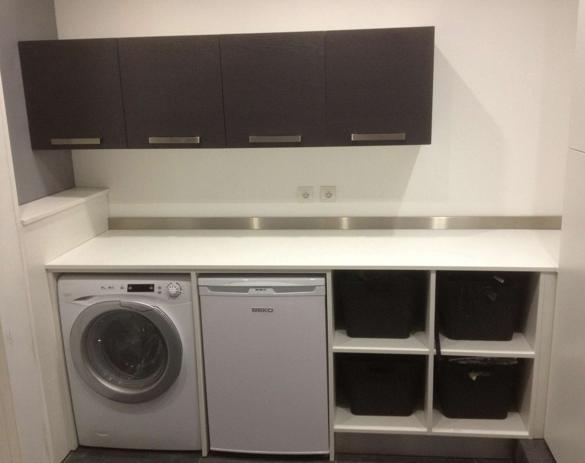Conçues et fabriquées dans notre atelier, ces buanderies ont été développées pour organiser les équipements et optimiser l’espace disponible. Chaque projet est étudié en fonction des dimensions de la pièce, des réseaux existants et des contraintes techniques propres au lieu.