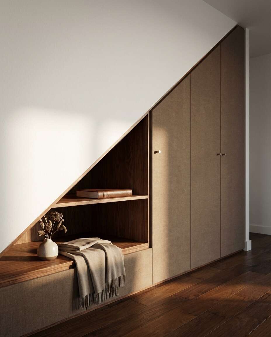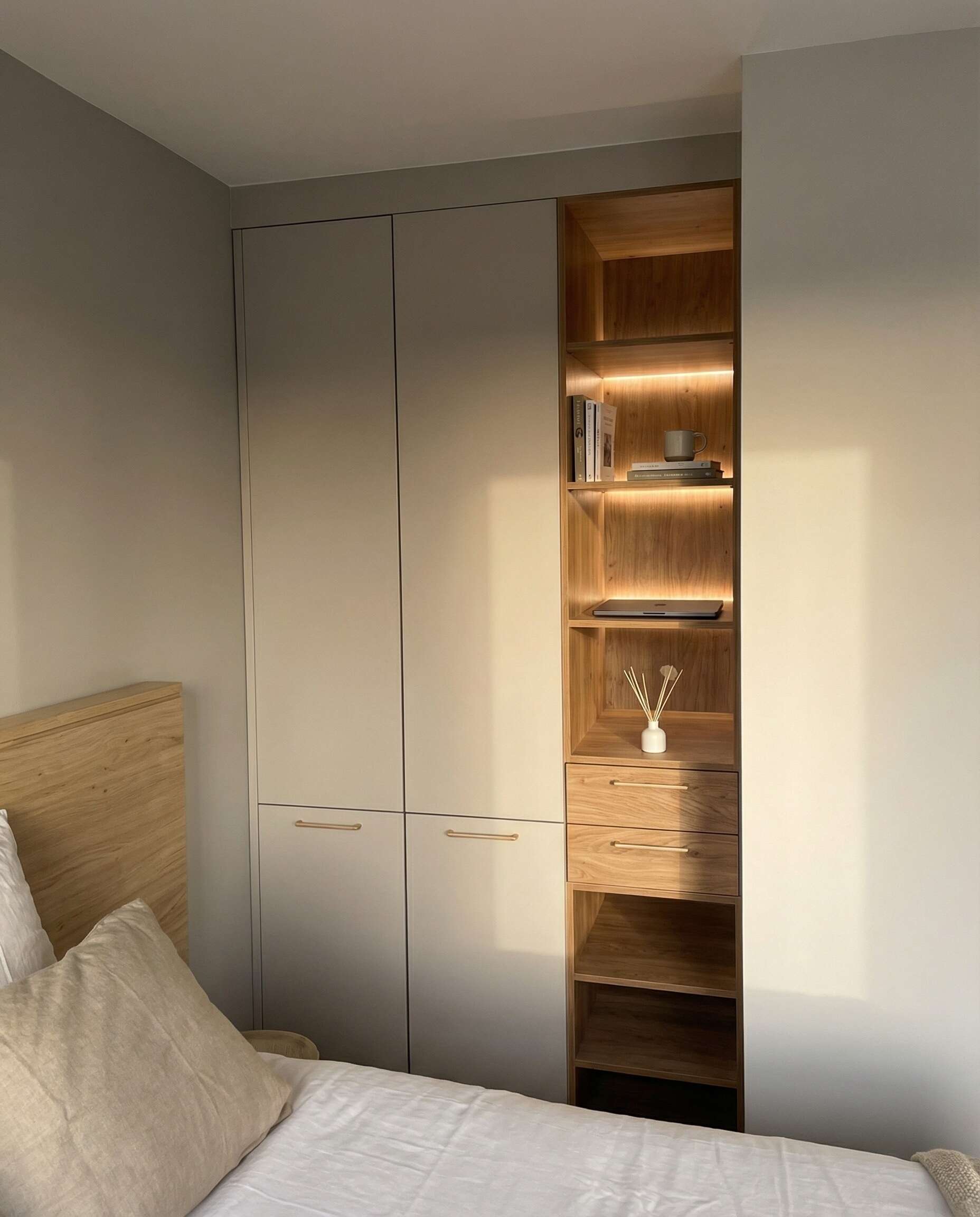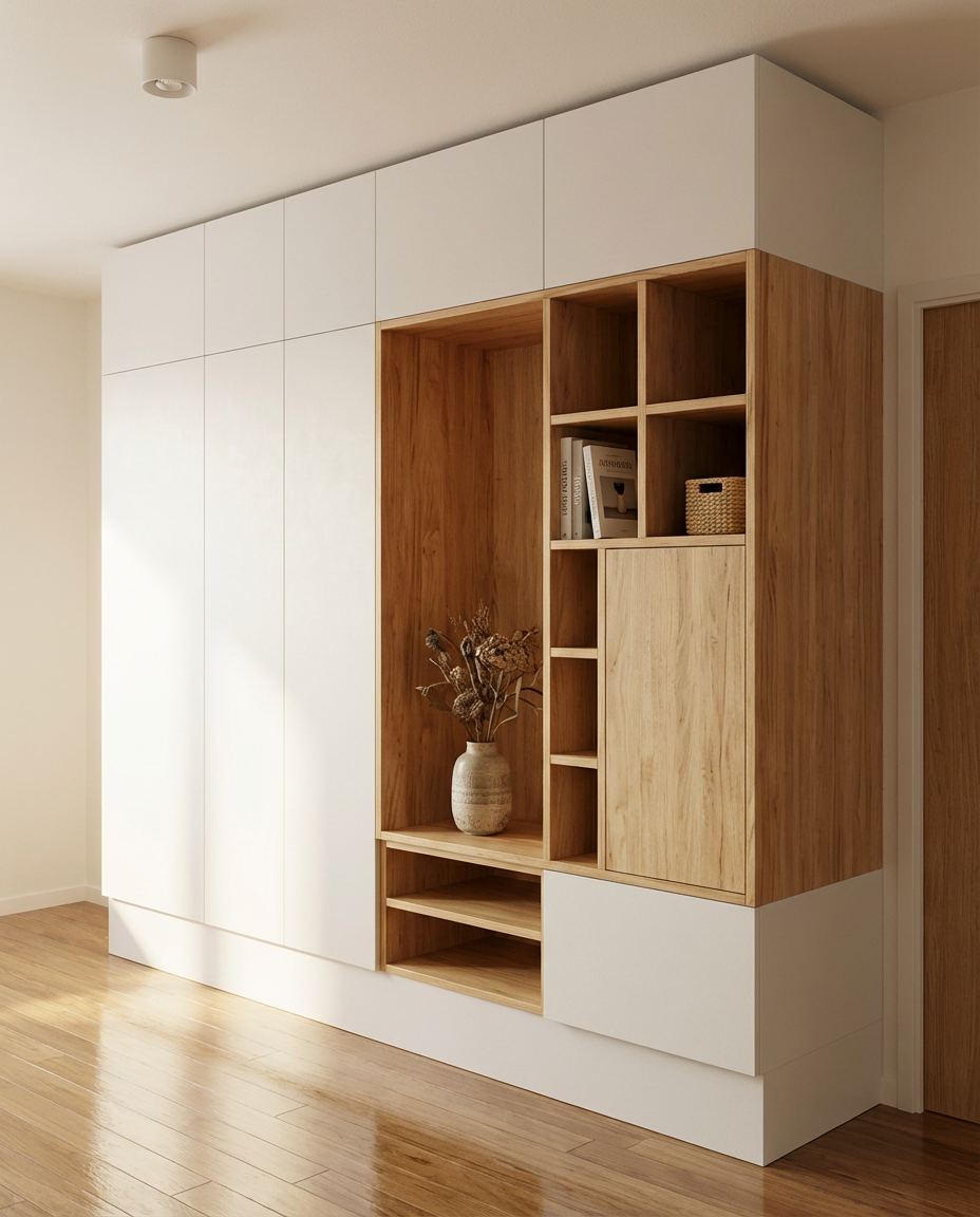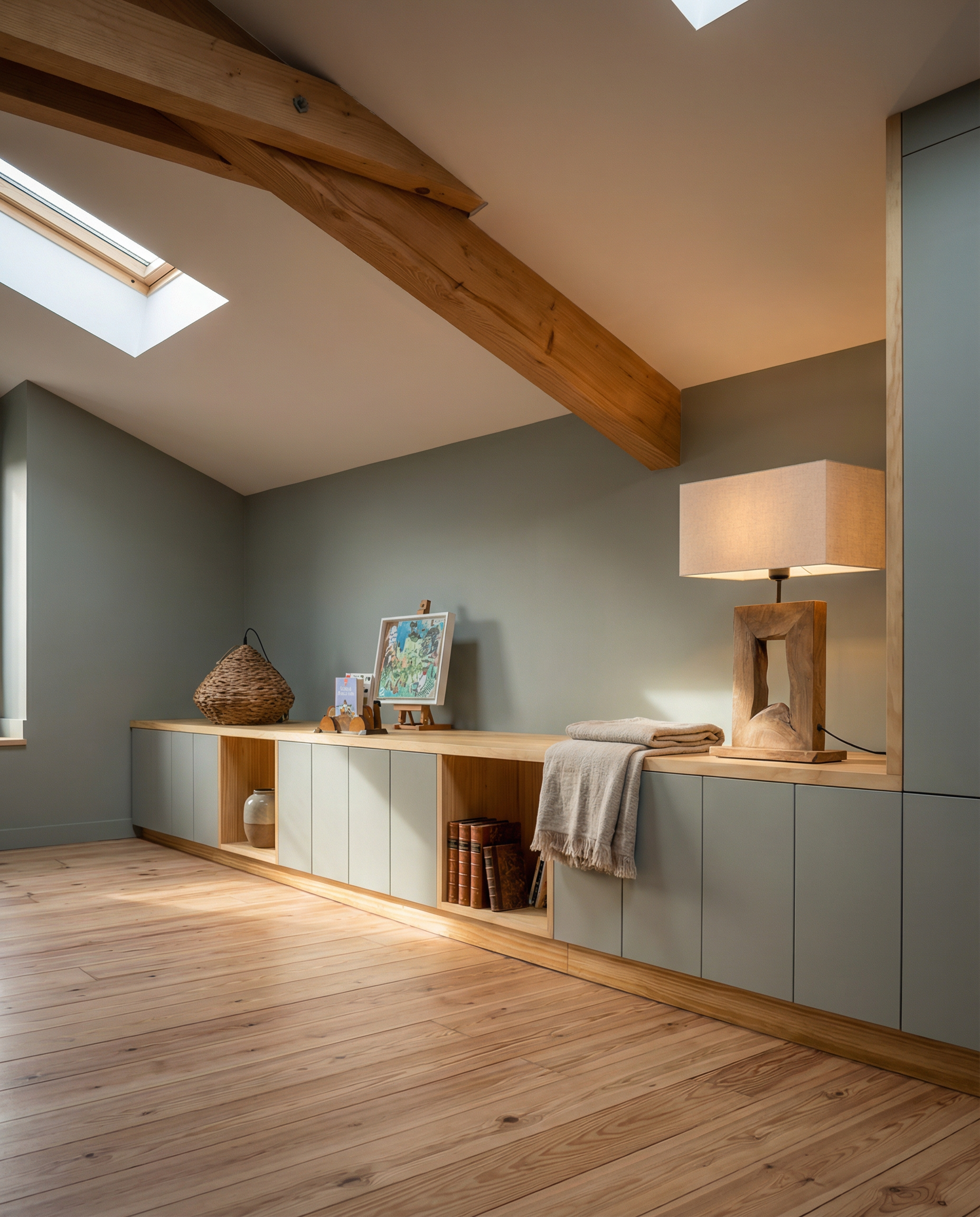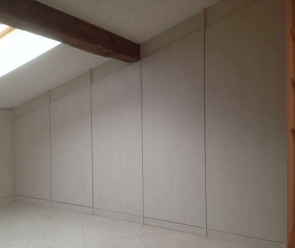 Conçus et fabriqués dans notre atelier, ces aménagements ont été développés pour optimiser le rangement et s’adapter aux dimensions exactes de chaque espace. Chaque projet est étudié en fonction des besoins : penderies, étagères, tiroirs, rangements spécifiques ou intégration sous pente.