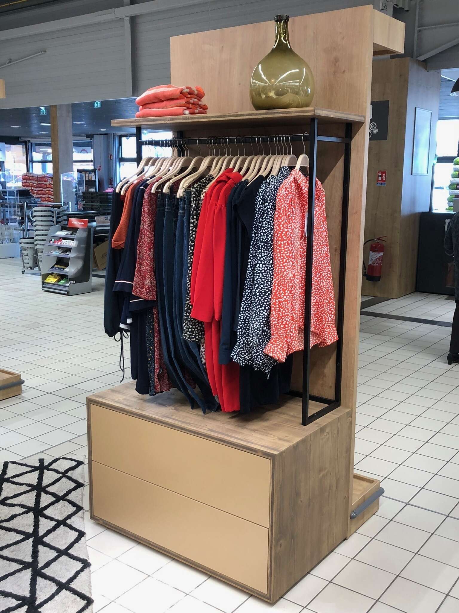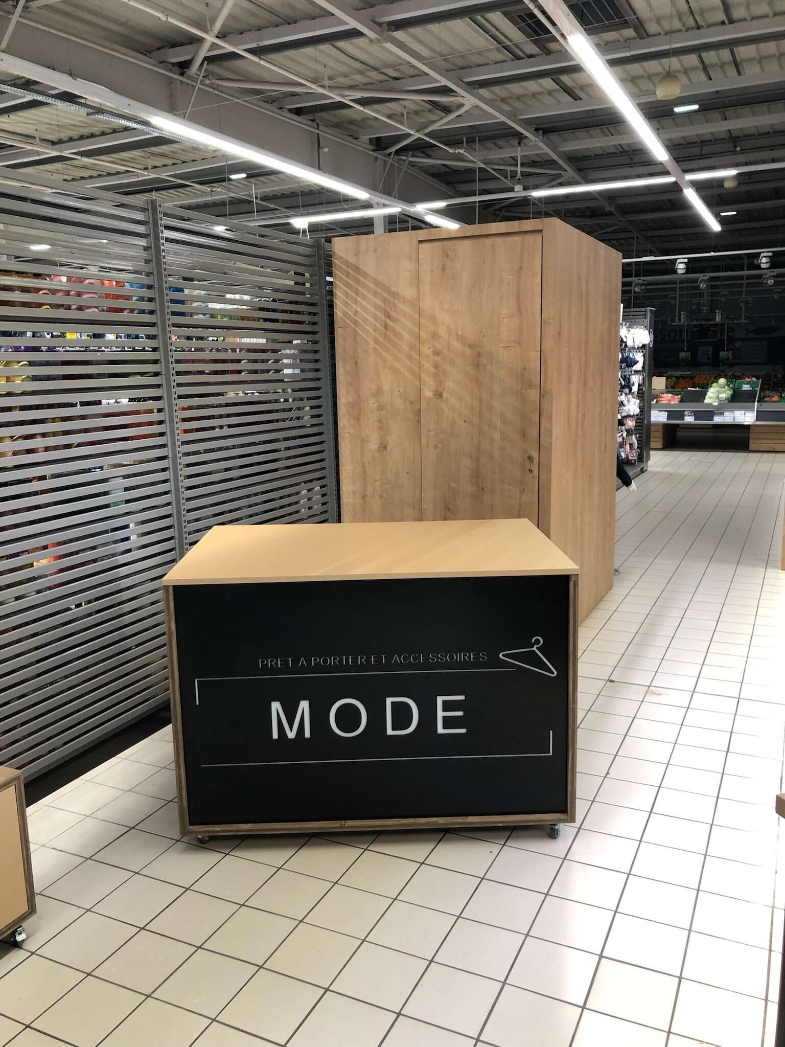 Réalisation sur-mesure pour les halls de Cenon : un bar à cacahuètes conçu comme une pièce à la fois fonctionnelle et conviviale.