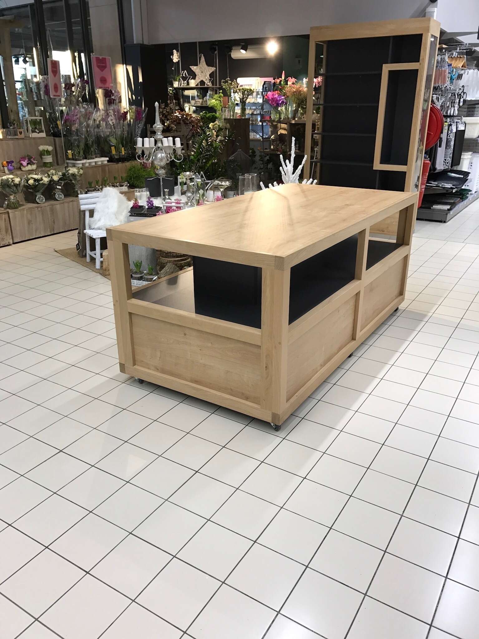Conçu et fabriqué dans notre atelier, cet îlot central a été développé pour organiser et présenter les végétaux au sein de l’espace pépinière. Son implantation a été étudiée afin de structurer la zone de vente et de faciliter la circulation des clients.