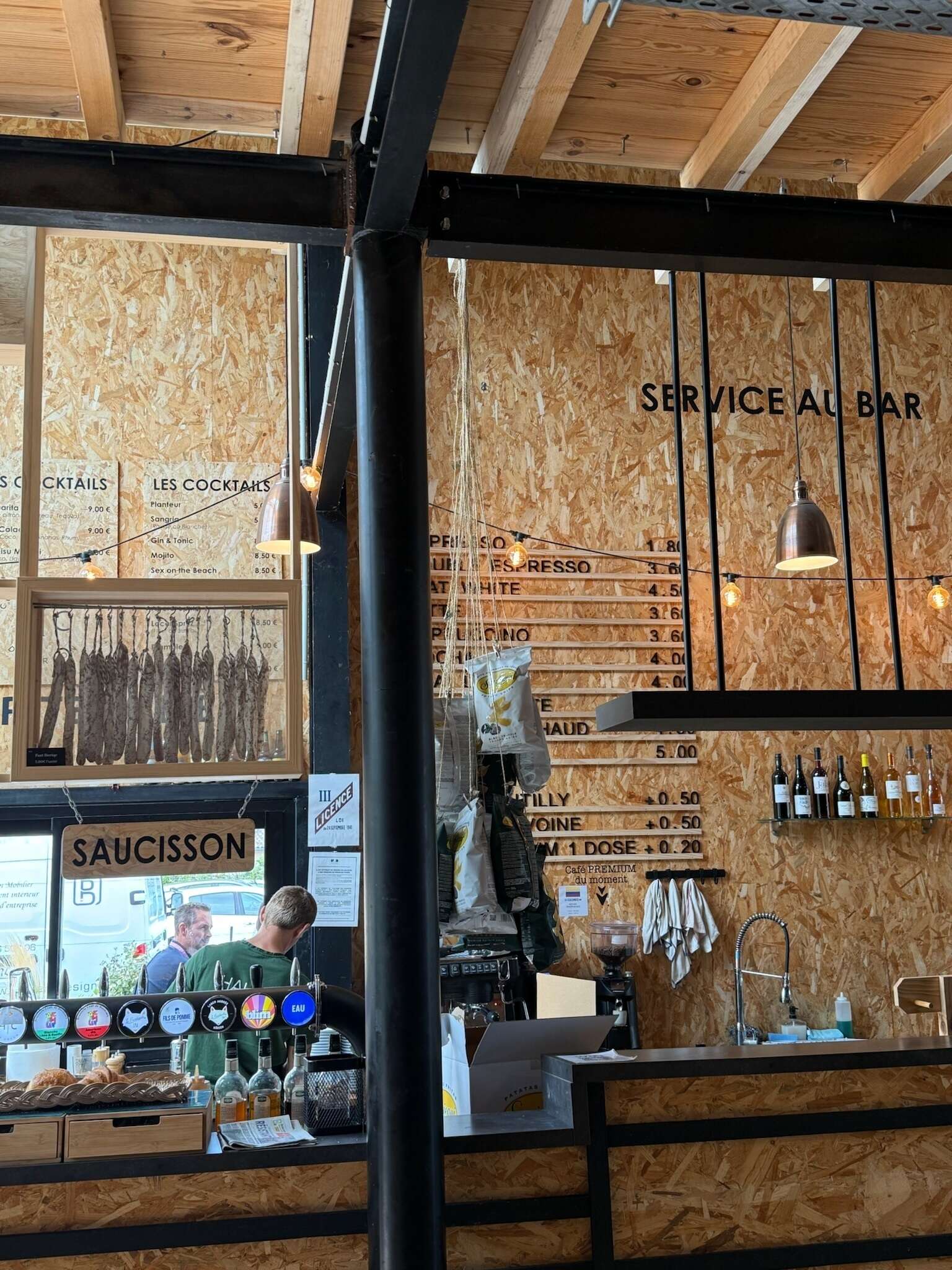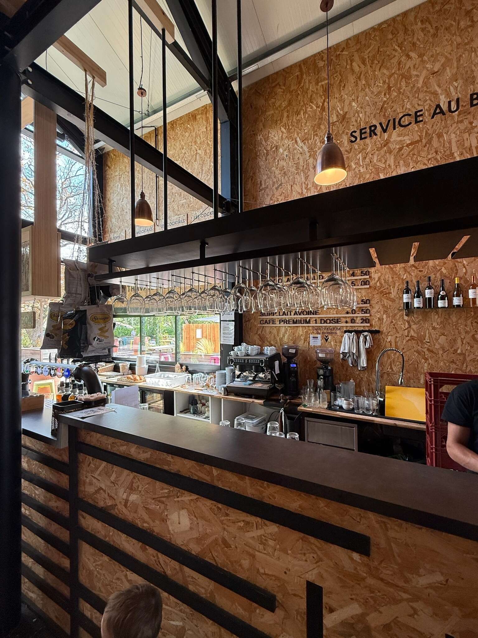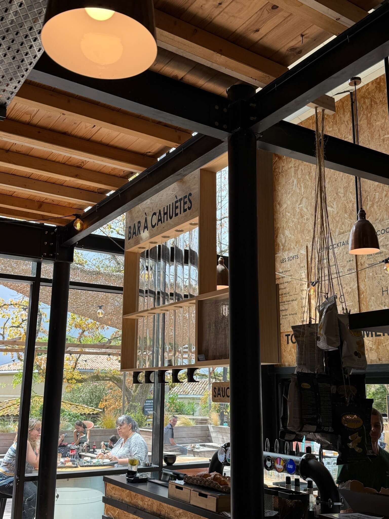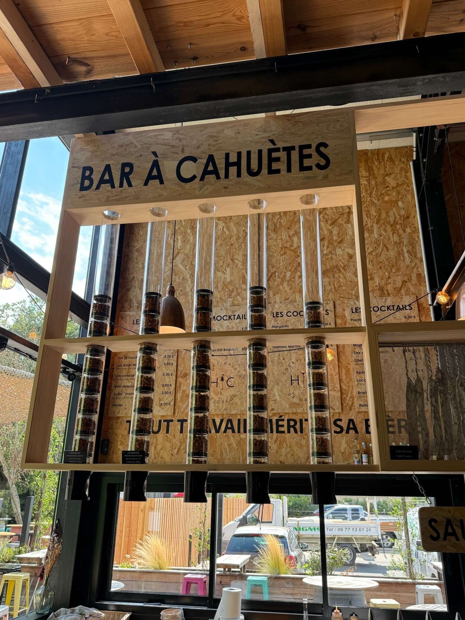 Réalisation sur-mesure pour les halls de Cenon : un bar à cacahuètes conçu comme une pièce à la fois fonctionnelle et conviviale.