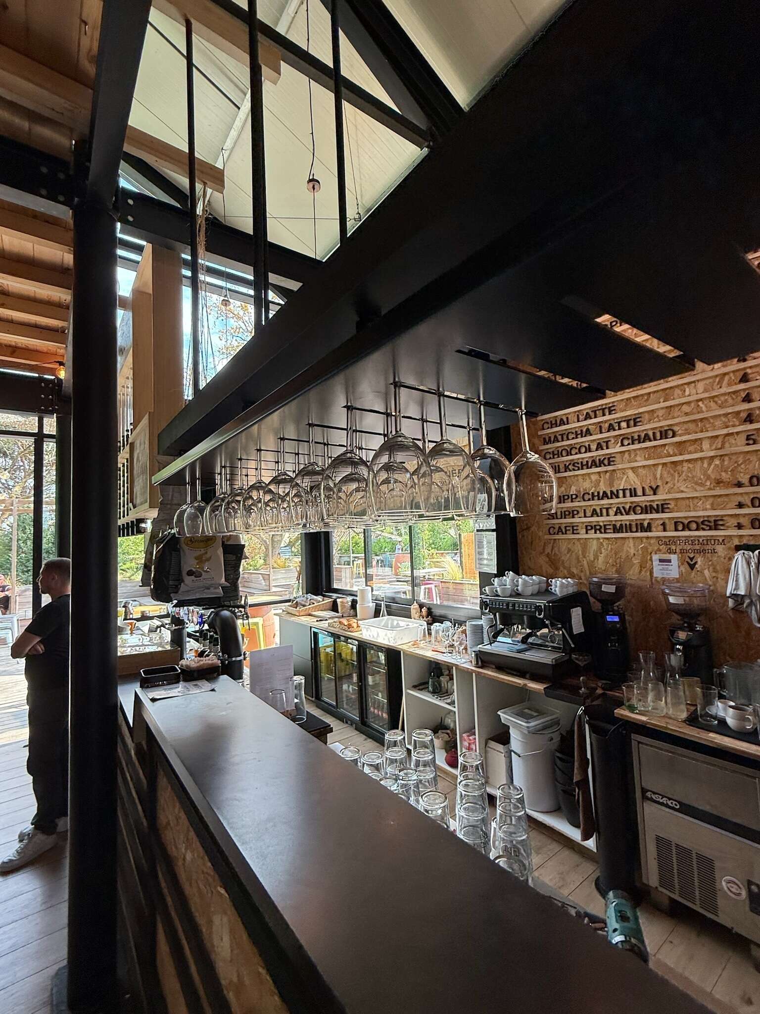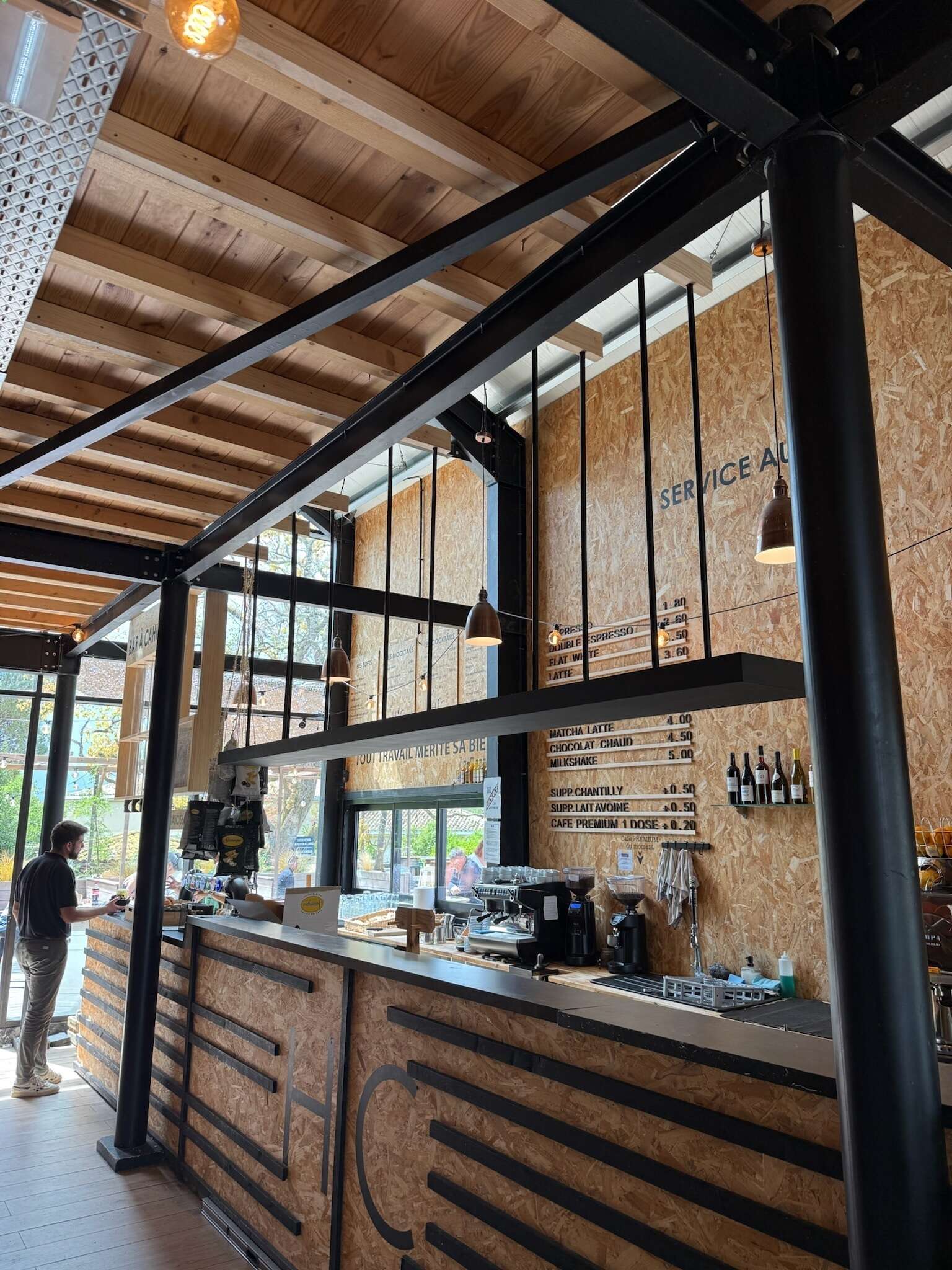 Réalisation sur-mesure pour les halls de Cenon : un bar à cacahuètes conçu comme une pièce à la fois fonctionnelle et conviviale.