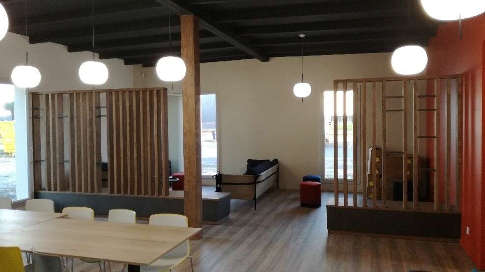 Conçue et réalisée dans notre atelier, cette salle de pause a été pensée pour répondre aux besoins quotidiens des équipes. L’agencement a été étudié afin d’optimiser l’espace, structurer les zones de circulation et intégrer des rangements adaptés.